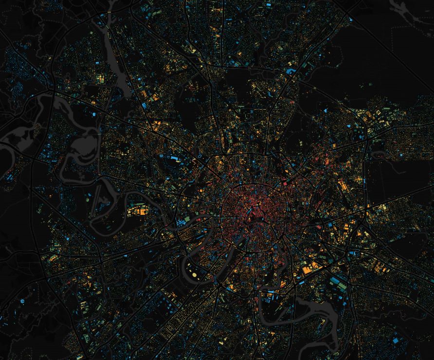 Дома на карте окрашены в разные цвета в зависимости от их возраста, что позволяет наглядно увидеть, как застраивался город с XIV века до наших дней.