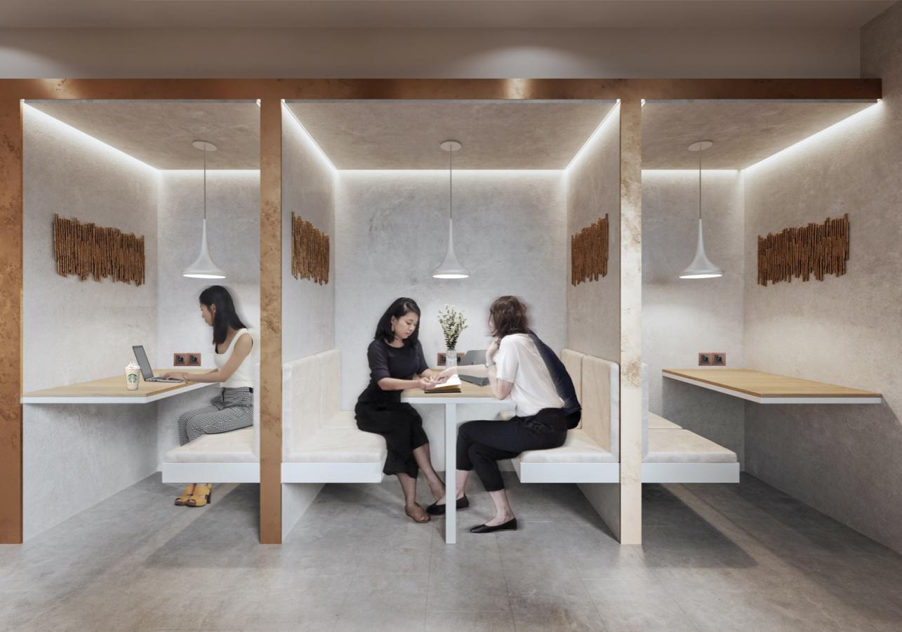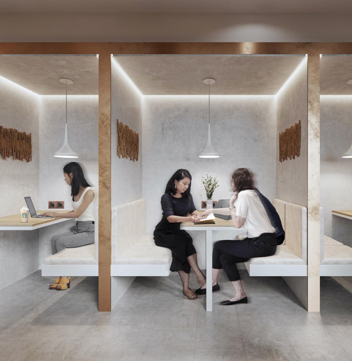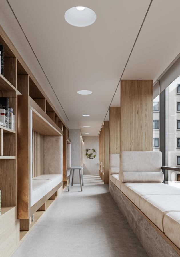 Комфортное лобби и мягкие зоны отдыха позволяют провести встречу или просто передохнуть с книжкой в интерьере вдохновляющем на работу и творчество.